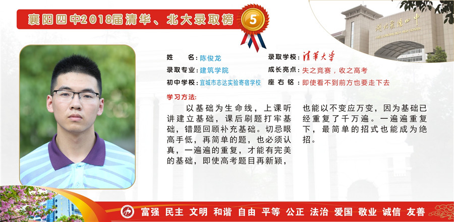 2018屆清華、北大錄取榜:陳俊龍