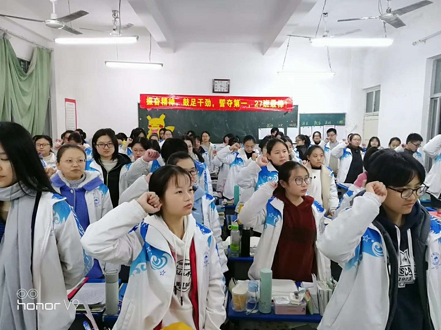 “相信自我,超越自我一一 不忘初心,三年磨一劍,精益求精!方得始終,六月試鋒芒,雄冠荊楚!天道酬勤,一切都是最好的安排!”高三年級主任劉明國。