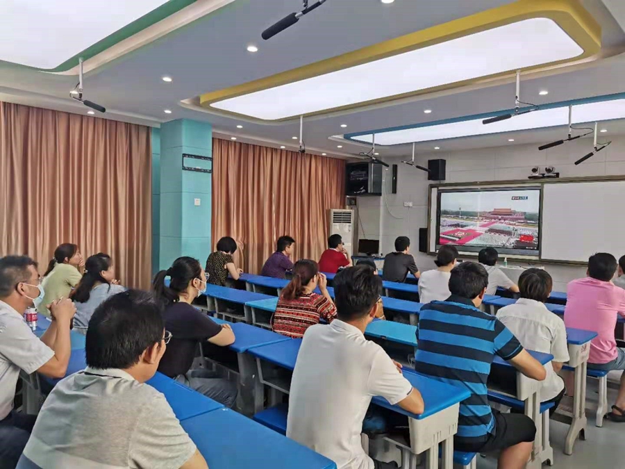 百年功勛,舉世矚目;百年華誕,舉國慶祝。7月1日上午8時整,慶祝中國共產黨成立100周年大會在天安門廣場隆重舉行,襄陽四中黨委組織教職工在至善樓一樓報告廳集中收看了實況直播。